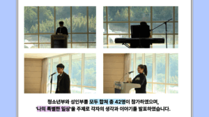 '나의 특별한 일상'을 주제로 각자의 생각과 이야기를 발표하였습니다.