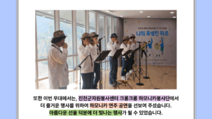 또한 이번 무대에서는, 진천군자원봉사센터 크롱크롱 하모니카봉사단에서