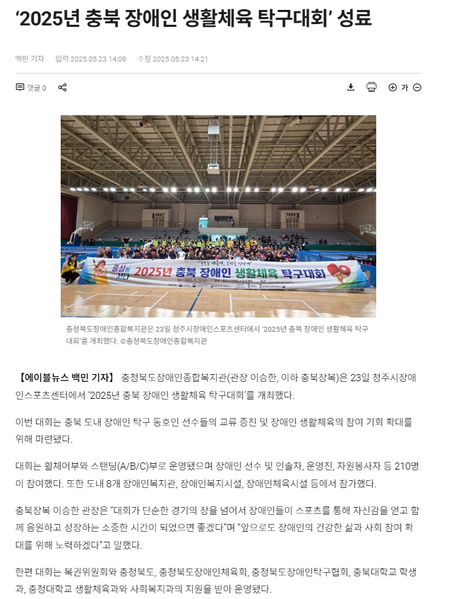 '2025년 충북 장애인 생활체육 탁구대회' 성료