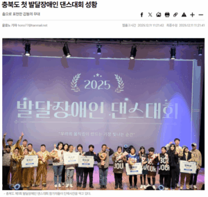 [충북일보] 충청북도장애인종합복지관은 최근 '2025년 충청북도 제1회 발달장애인 댄스대회'를 개최하며 지역에서 최초로 열린 발달장애인 대상 댄스 경연을 성공적으로 마무리했다.
