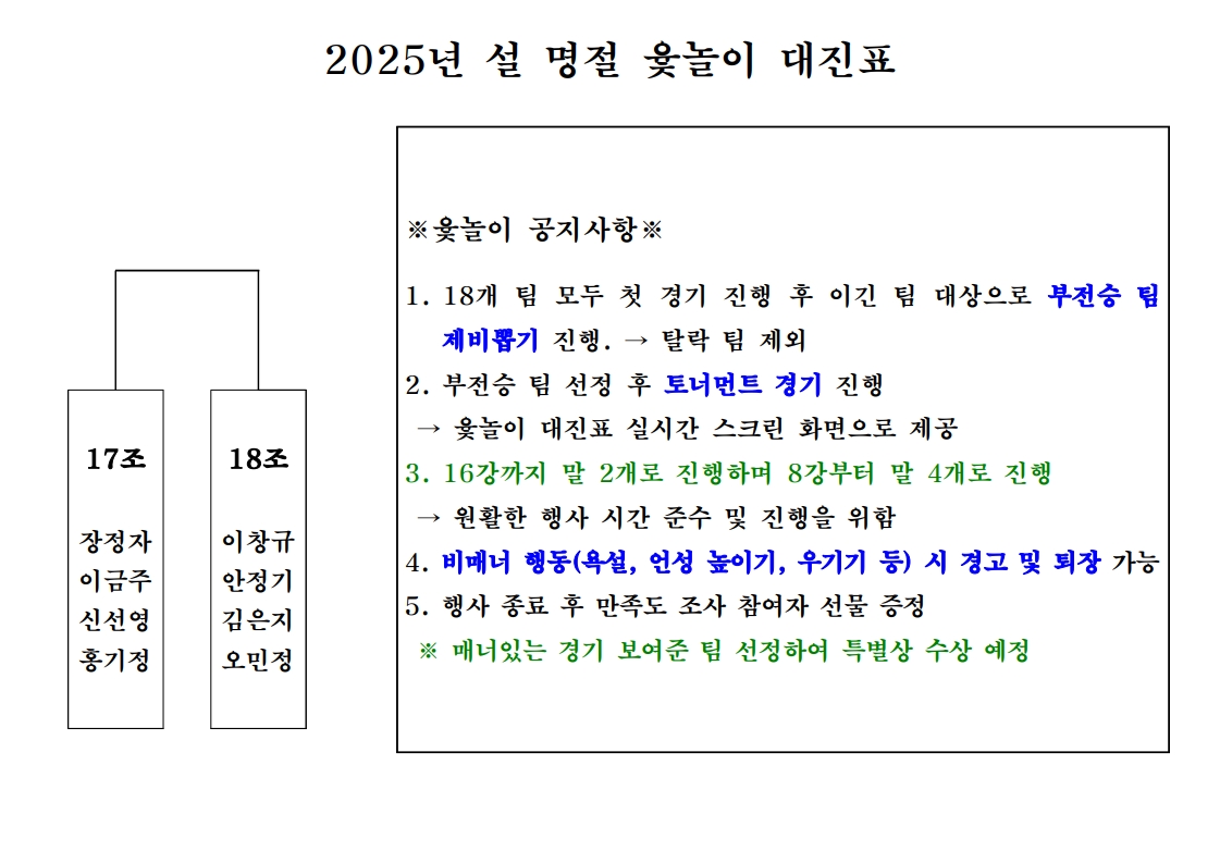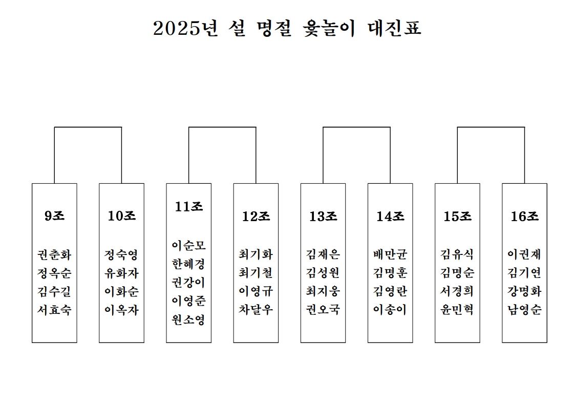 2025년 설 명절 행사 윷놀이 대진표 공개