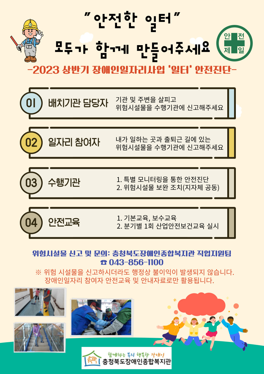 모두가 안전한 일자리 환경을 만들기 위해 여러분들의 적극적인 참여를 바랍니다.